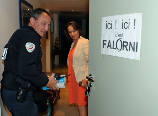 Photo par Xavier Leoty/AFP/Archives Un policier constate une affiche »ici c’est Falorni » sur la porte de Ségolène Royal législatives 15/06/12 La Rochelle